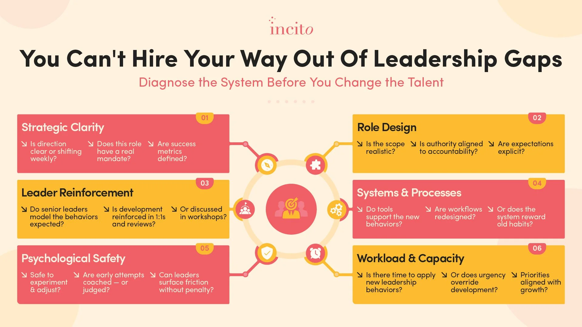 Before you replace a leader, step back and assess the system they’re operating in. These six factors will help you diagnose what’s really blocking performance: